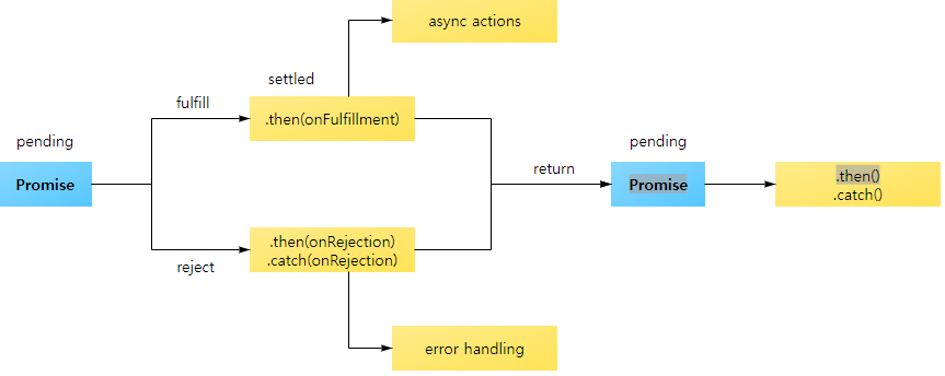 * Fulfilled(이행) : 비동기 처리가 완료되어 프로미스가 결과 값을 반환해준 상태