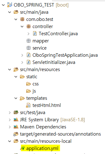기본적으로 src/main/resources 에 application.properties 파일이 있으나 삭제 후 application.yml 로 다시 생성했다.