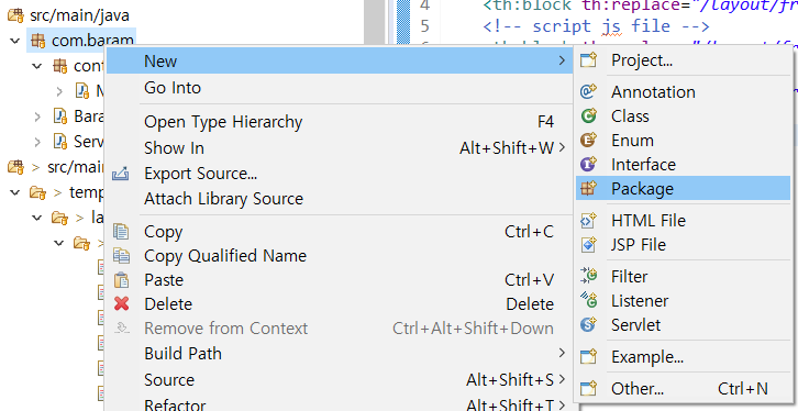 (저는 com.baram 으로 패키지를 설정했습니다.)