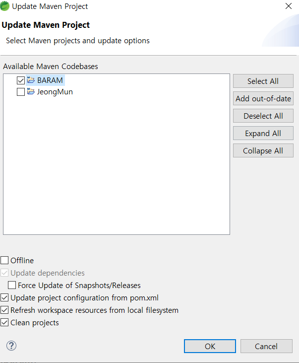 Project 오른쪽 마우스 클릭 > Maven > Update Project