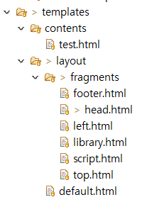 * layout/fragments/** : head, top, left 등 화면의 각 부분을 담당할 조각 페이지들