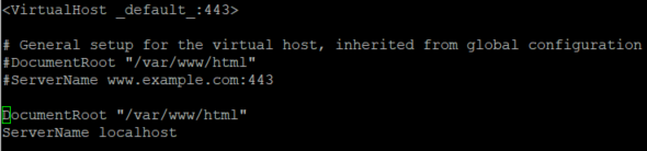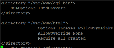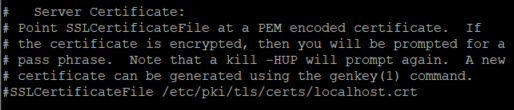 - 기본으로 설정되어있는 SSLCertificateFile 주석처리