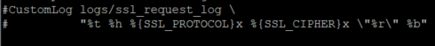 CustomLog logs/ssl_request_log "%t %h %{SSL_PROTOCOL}x %{SSL_CIPHER}x \"%r\" %b"