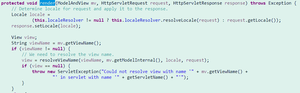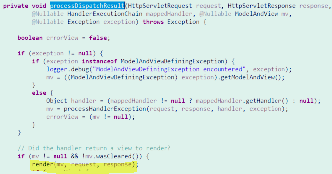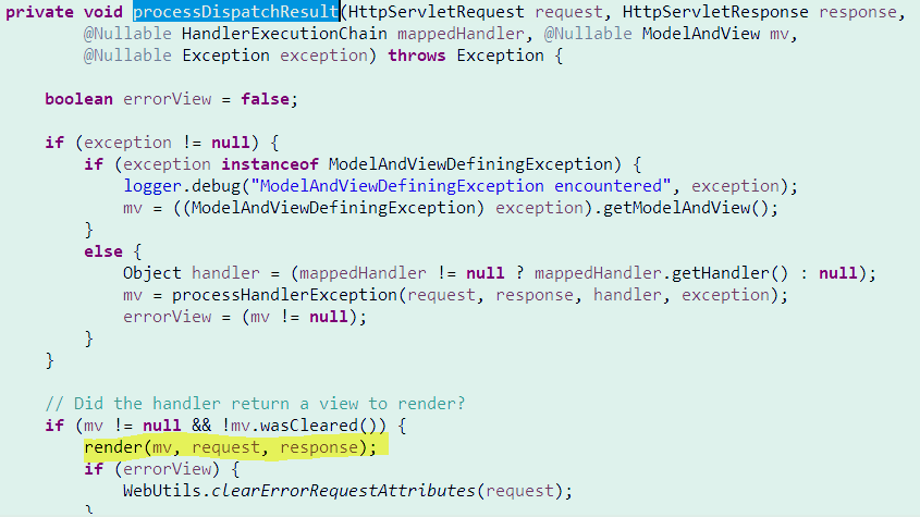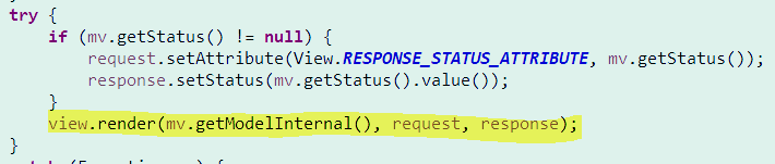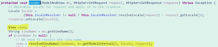 ModelAndView mv 에 대한 내용 처리 후 render() 메서드를 통해 실제 View 를 처리한다.