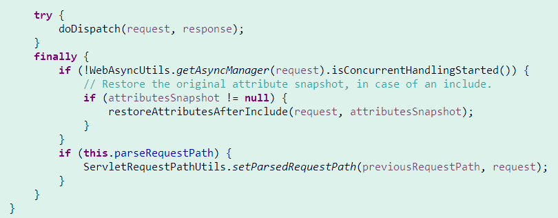 클라이언트 요청에 의해 Servlet 의 doService() 가 호출되는데 doService() 메서드는 아래 내용과 같이 doDispatcher에게
