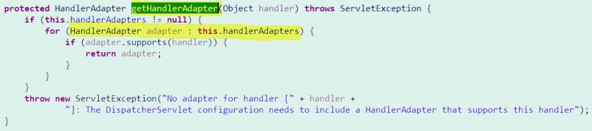 3. Handler 를 찾아 로직을 실행시킬 HandlerAdapter 를 찾기 위해 getHandlerAdapter() 메서드를 호출한다.
