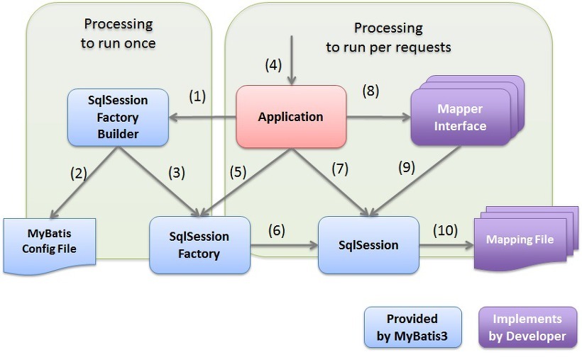 응용 프로그램이 SqlSessionFactory를 생성하기 위해 SqlSessionFactoryBuilder에게 빌드하도록 요청한다. |