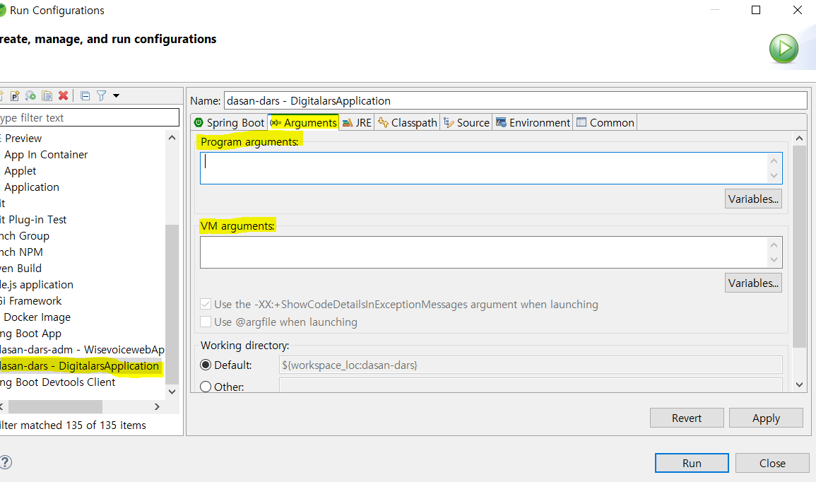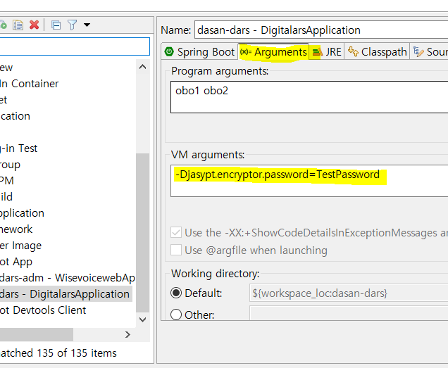 Spring Boot 로 어플리케이션을 개발하는 도중에 VM arguments 를 사용하는 상황이 있었다.