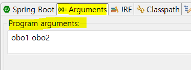 프로젝트 오른쪽 버튼 > Run As > Run Configurations > 왼쪽 프로젝트 클릭 > Arguments 선택