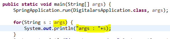 main(String[] args)로 전달 |