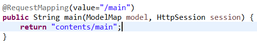 내가 요청한 contextPath/main 에는 따로 세션을 생성하는 문장이 빠져있어 session 생성이 안되어 에러가 났다.