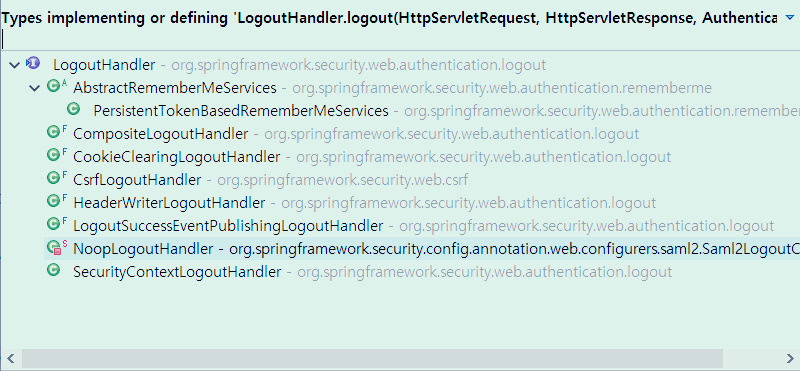아래는 LogoutHandler의 Logout Hanlder는 기본적으로 인터페이스를 구현한 CompositeLogoutHandler 이다.