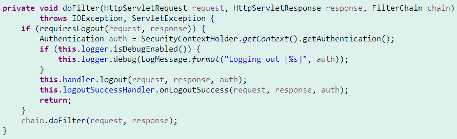 아래는 LogoutFilter 클래스와 doFilter 메서드이다.