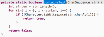 해당 문자열을 하나하나 확인하면서 공백이 아닌 character 형이 한개라도 있으면 true를 리턴한다.